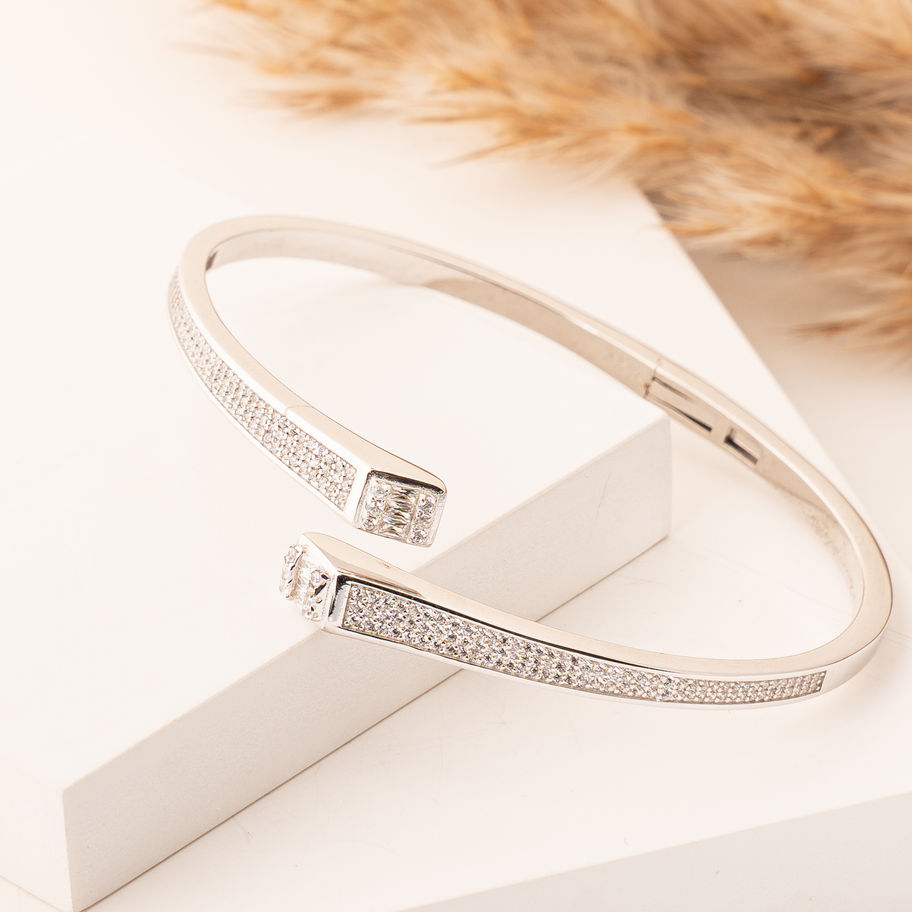 Discover the Celeste Open Kada at Silvory, where timeless elegance meets unmatched craftsmanship. This exquisite piece, crafted from premium 925 silver, boasts a purity that ensures a long-lasting shine and sophistication. Designed for the modern individual, its versatile style makes it perfect for any occasion. Elevate your everyday look with Silvory's dedication to quality and elegance.