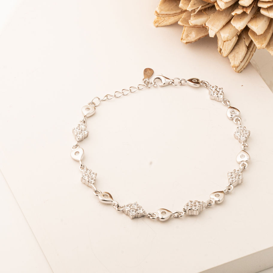 Discover the charm of the Mini Flower Sparkle Bracelet, a delightful addition to Silvory's collection of premium 925 silver jewellery. This intricately designed piece features delicate floral motifs that sparkle with every move, embodying timeless elegance and purity. Perfect for everyday wear, this bracelet captures the essence of Silvory's commitment to long-lasting shine and superior craftsmanship. Elevate your jewellery collection with a touch of nature's beauty, crafted to perfection just for you. Embrace elegance with the Mini Flower Sparkle Bracelet today.